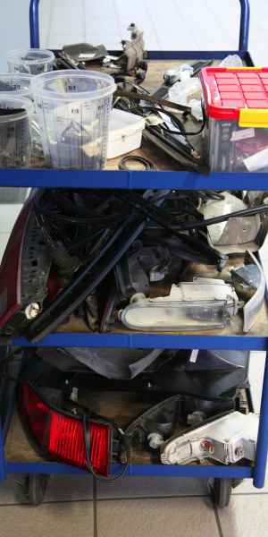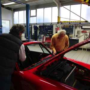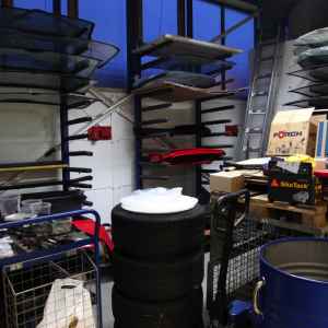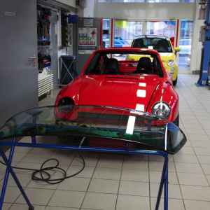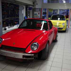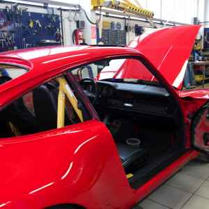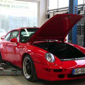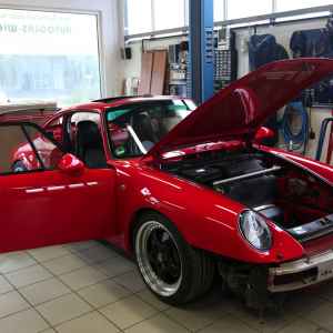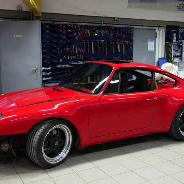 Seit heute (01.02.13) steht der 993 wieder beim Bernie in der Werkstatt. Die Frontscheibe ist wieder drin und diverse Kleinteile wie z. B. die Türgriffe, Scheinwerfer, etc. sind auch schon dran. Ich habe die Teile aber noch nicht richtig fest gezogen, der Lack kann noch über das Wochenende ein wenig aushärten. Mal gespannt wie lange es dauert, bis alles wieder dran ist. Einzig die Stoßstangen sind noch bis Freitag beim Lackierer.