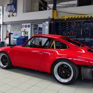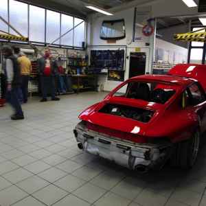 Am 07.02 sind schon fast alle Teile verbaut, die Stoßstangen kommen dann hoffentlich morgen. Leider musste eine neue Hackscheibe gekauft werden und zwar nur weil der blöde Plastikrahmen der Scheibe total porös war. Weil PORSCHE das Teil nicht einzeln anbieten, musste eine neue Scheibe gekauft werden. Die gibt es übrigens nur im PZ!